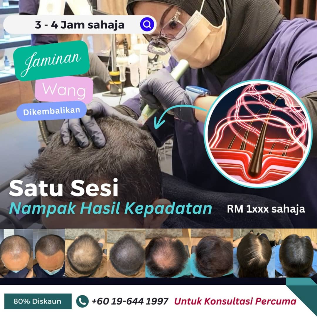 Our Simulation & Stimulation technology delivers visible results in just 1 session, providing a faster, more effective solution for hair loss.Trusted by thousands across hair growth Malaysia, this treatment is safe, and backed by a money-back guarantee.
